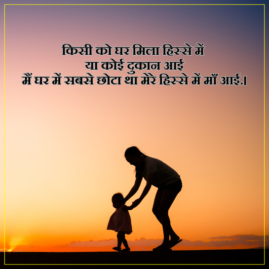 माँ के अनगिनत उपकारों का हिसाब कभी नहीं चुकाया जा सकता, पर उनके प्रति अपना स्नेह और कृतज्ञता ‘Maa Shayari’ के माध्यम से हृदय से व्यक्त की जा सकती है। इस ‘Maa Shayari in Hindi’ को पढ़ते ही हर दिल यह महसूस करेगा कि माँ जैसा कोई दूसरा इस संसार में नहीं है।