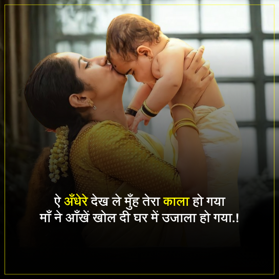 बिलकुल, 2 Line Shayari में कम शब्दों में भी गहरी भावनाओं को प्रभावशाली और दिल को छू जाने वाले अंदाज़ में पेश किया जा सकता है, खासकर माँ जैसे कीमती रिश्तों के लिए।